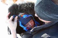 backside. Aaron sewed a coyote ruff on the ergo so Luke would have some